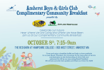 Celebrate our Future! Come and enjoy a breakfast buffet and help us show gratitude to our past board president Tom Crossman for his many years of service and dedication to the Amherst Boys & Girls Club, and welcome Kim Alli as our new acting Board President. We will also provide Club updates and Share our Vision for 2020. October 8th 7:15 – 9AM at The Red Barn at Hampshire College