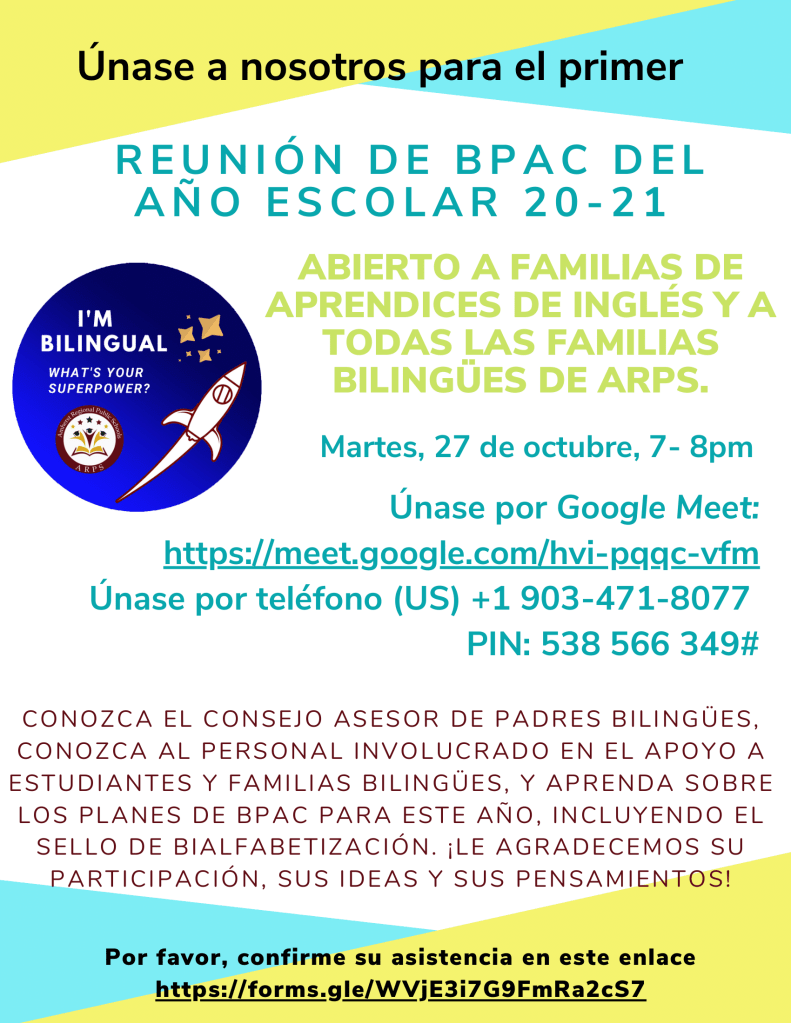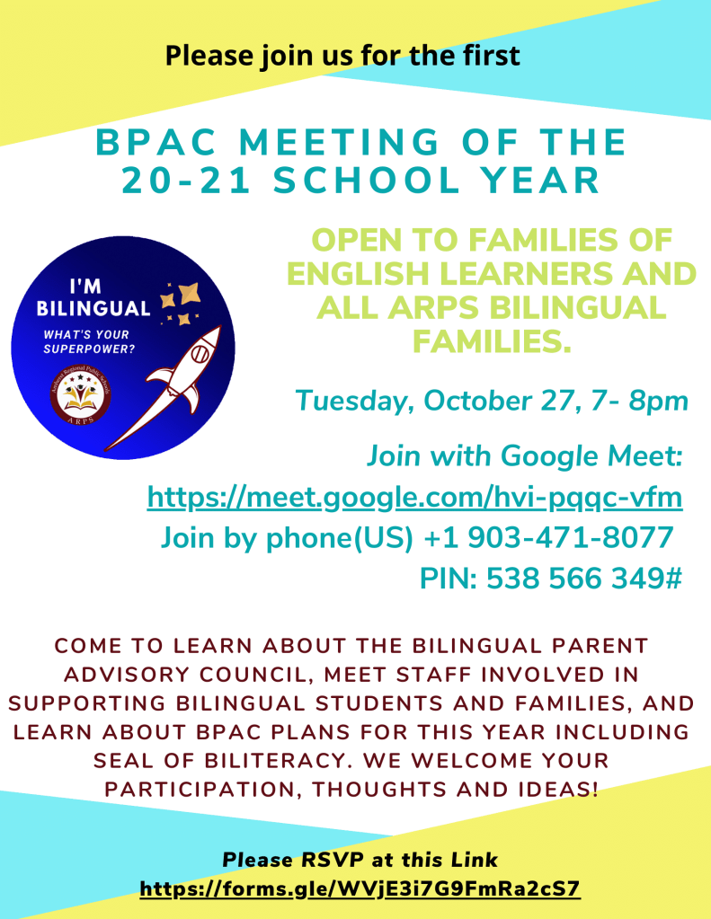 Bilingual Parent Advisory Council Meeting October 27, 7-8pm