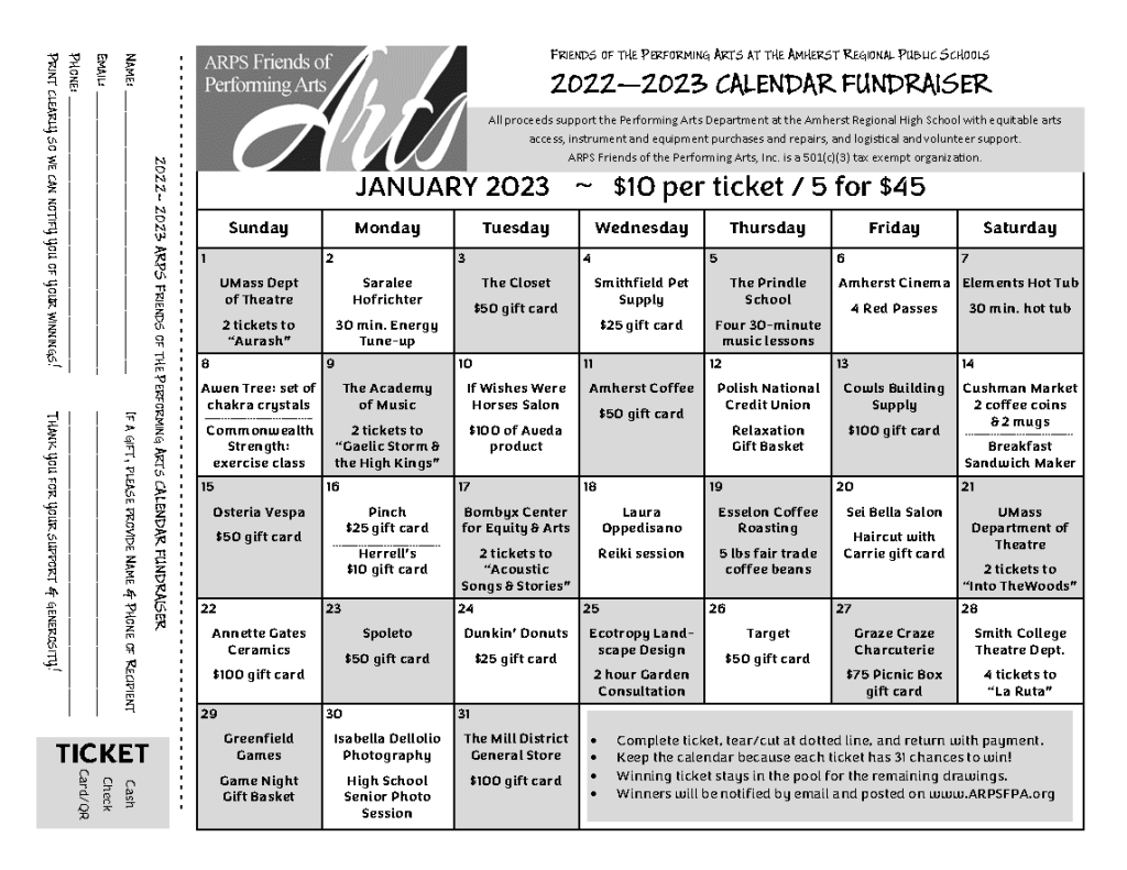 Each calendar card is $10 and offers 31 CHANCES TO WIN IN JANUARY 2023. Every day in January