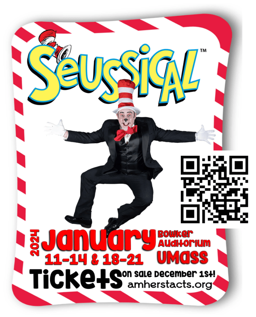 Tickets are now on sale for the Amherst Community Theater production of SEUSSICAL: The Musical! “Oh, the thinks you can think” when Dr. Seuss’ best-loved characters collide and cavort in an unforgettable musical caper! Horton the Elephant, the Cat in the Hat, and all of your favorite Dr. Seuss characters spring to life onstage at the beautiful UMass Bowker Auditorium.