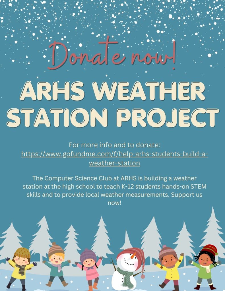 The Computer Science Club is hoping to place an order for the station sometime in the winter and set it up in Spring 2025. Outreach activities at the middle and elementary schools will begin in Fall, 2025. They ask that you please donate to the cause so they can fund this project and help teach others! Link to donate: https://www.gofundme.com/f/help-arhs-students-build-a-weather-station