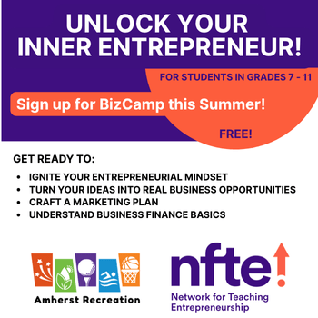 Amherst Recreation is thrilled to partner with the Network for Teaching Entrepreneurship (NFTE) to offer a FREE Biz Camp to Amherst residents and ARPS students currently in Grades 7-11.