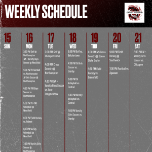 Oct. 21: Homecoming (7-0 p.m.) Oct. 22: Last day to retrieve mums and asters from North Hadley Sugar Shack & Market Oct. 26: Concert at the HS auditorium (7 p.m.)